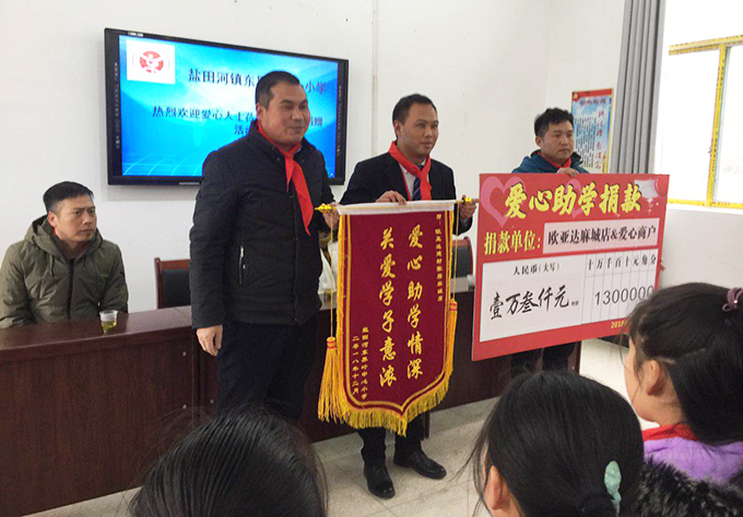 同时,本次公益活动要感谢:大金中央空调、马可波罗瓷砖、诺贝尔瓷砖、恒洁卫浴、法恩莎卫浴、德莱宝吊顶、古缇沙发、慕思寝具、萨丁贝壳粉、扬子地板、圣象地板、德国菲玛、TATA木门、方太厨电、欧派橱柜、志邦橱柜等完美体育官方网址爱心商户的大力支持。