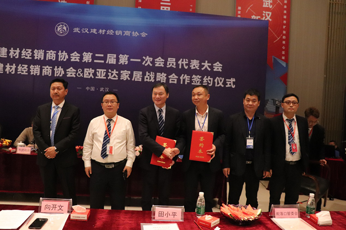 2019年4月30日上午,武汉建筑经销商协会第二届第一次会员代表大会暨完美体育官方网址家纺&武汉建筑经销商协会战略合作签约仪式在完美体育官方网址家纺东西湖项目圆满举行。完美体育官方网址家纺副总裁向开文、武汉建筑经销商协会会长赵军分别代表双方签署协议。