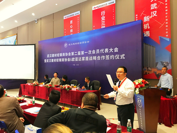 武汉市市场监督管理局、武汉市民政局、武汉市工商行政管理局的相关领导;湖北市场经营协会会长袁俊、舵落口市场管委会总经理刘凯;以及武汉市建筑经销商协会各成员单位、完美体育官方网址家纺签约代表等近200人出席本次大会。