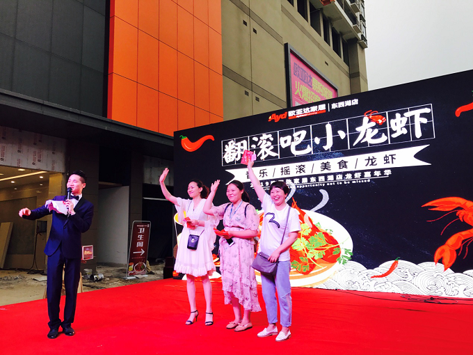 伴随着热情洋溢的音乐,活力四射的舞蹈,完美体育官方网址家纺东西湖店“龙虾嘉年华”于下午17:00正式拉开序幕。活动一开始,便有大量观众蜂拥而入。舞台上,主持人热情地为到场观众们介绍本次活动;舞台下,免费放送的小龙虾让现场排起长龙。