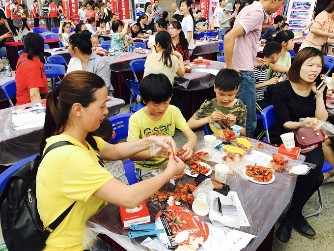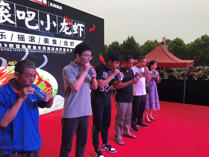 在别“虾”看·来“虾”吃的游戏环节,主持人随机抽取6名观众上台,每人一斤虾,最先吃完的三名观众可以获得我们精心准备的礼品。主持人宣布开始后,参赛人员便争分夺秒地吃着眼前的小龙虾,剥壳吃虾一套动作行云流水般顺畅。接下来的游戏环节中,上场的观众也是当仁不让,现场一片欢腾。