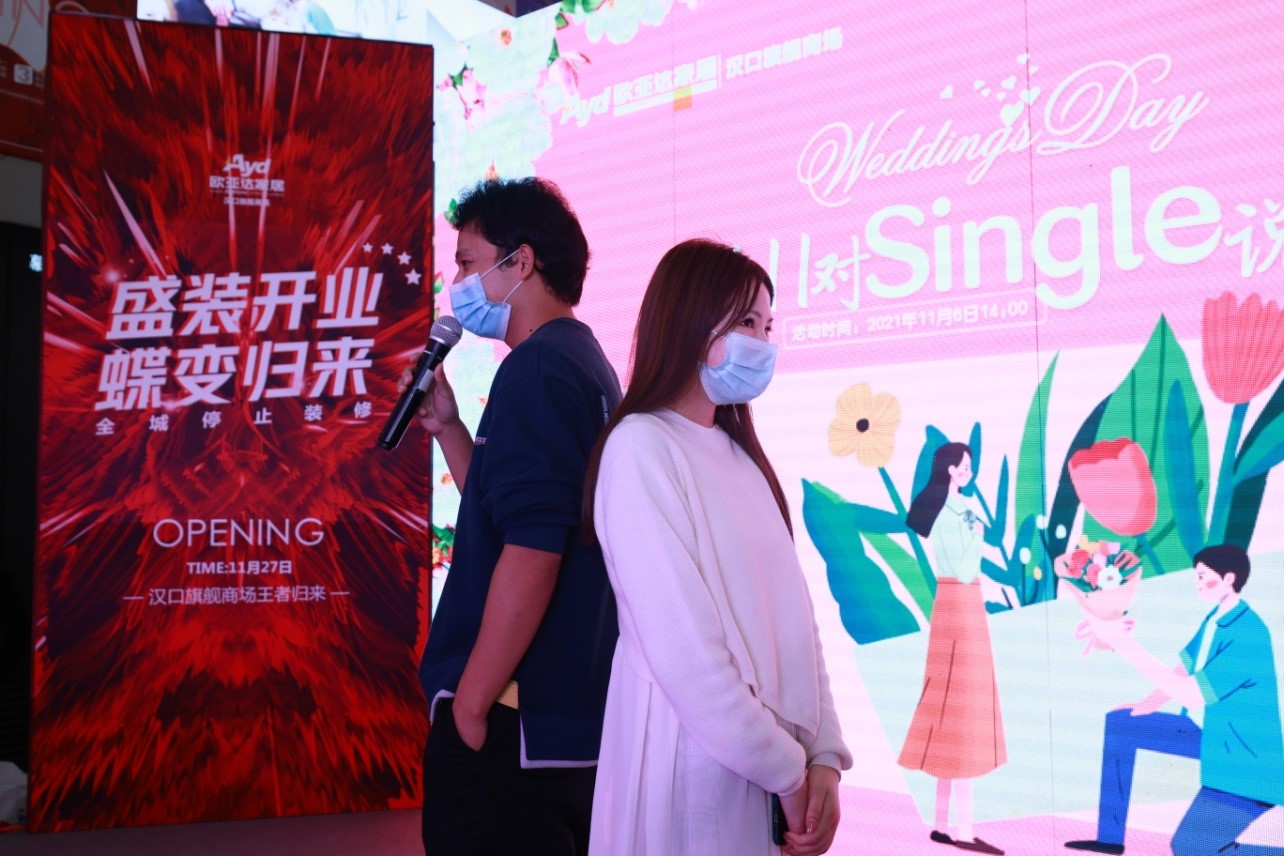 本次活动于2021年11月6日,在完美体育官方网址汉口旗舰商场盛大举行,更携手周六福珠宝、幸福纪婚纱摄影、觅千谷健康饮品、熊猫不走蛋糕联合赞助,希望可以将这份独特的浪漫凝固成每个人记忆中的美好瞬间。