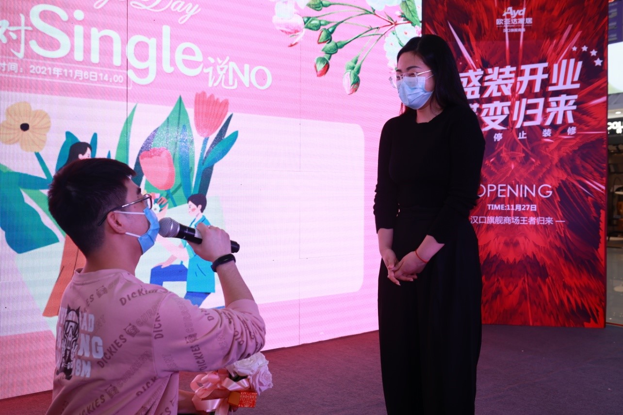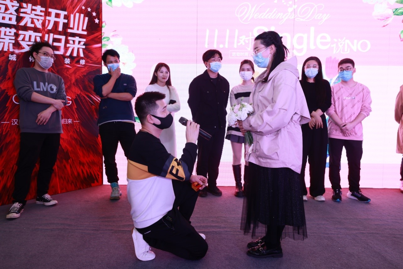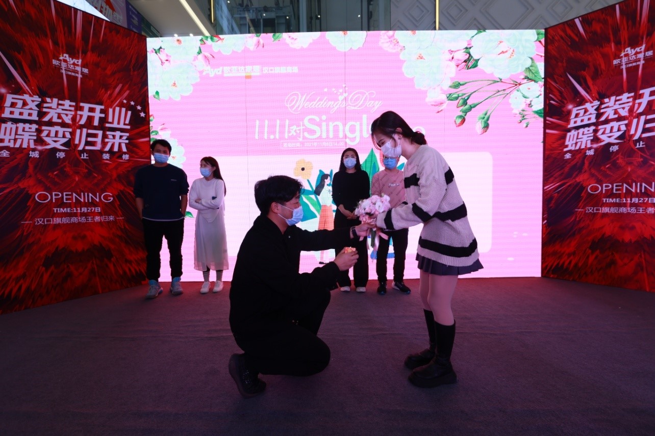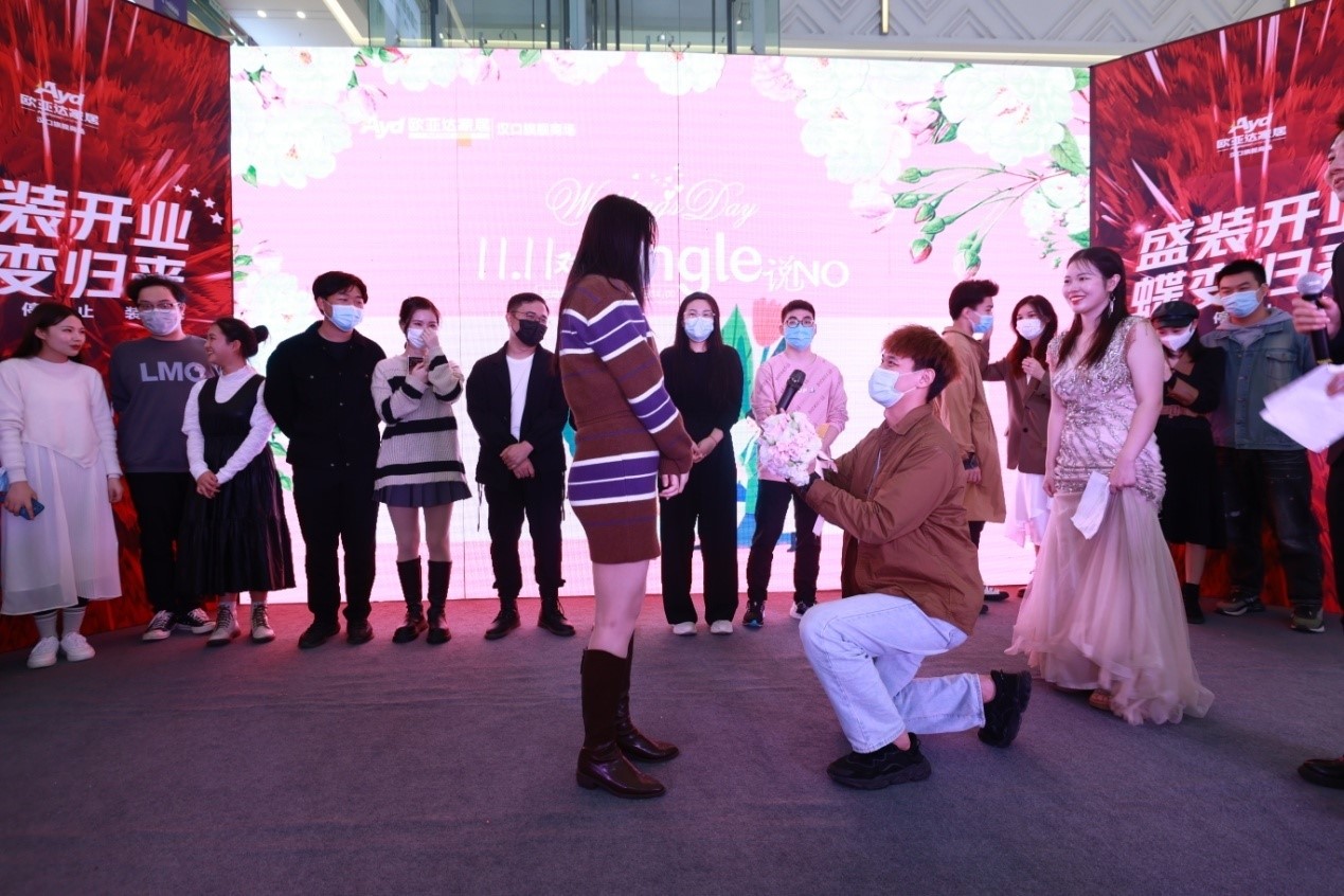 因此,在双十一这个特殊的日子里,有一场专属于爱情的偶遇在等你。完美体育官方网址家纺面向全武汉市青年男女发出“告白”邀请,以一场与众不同的快闪式告白求婚,让这个“11.11”对Single说NO!