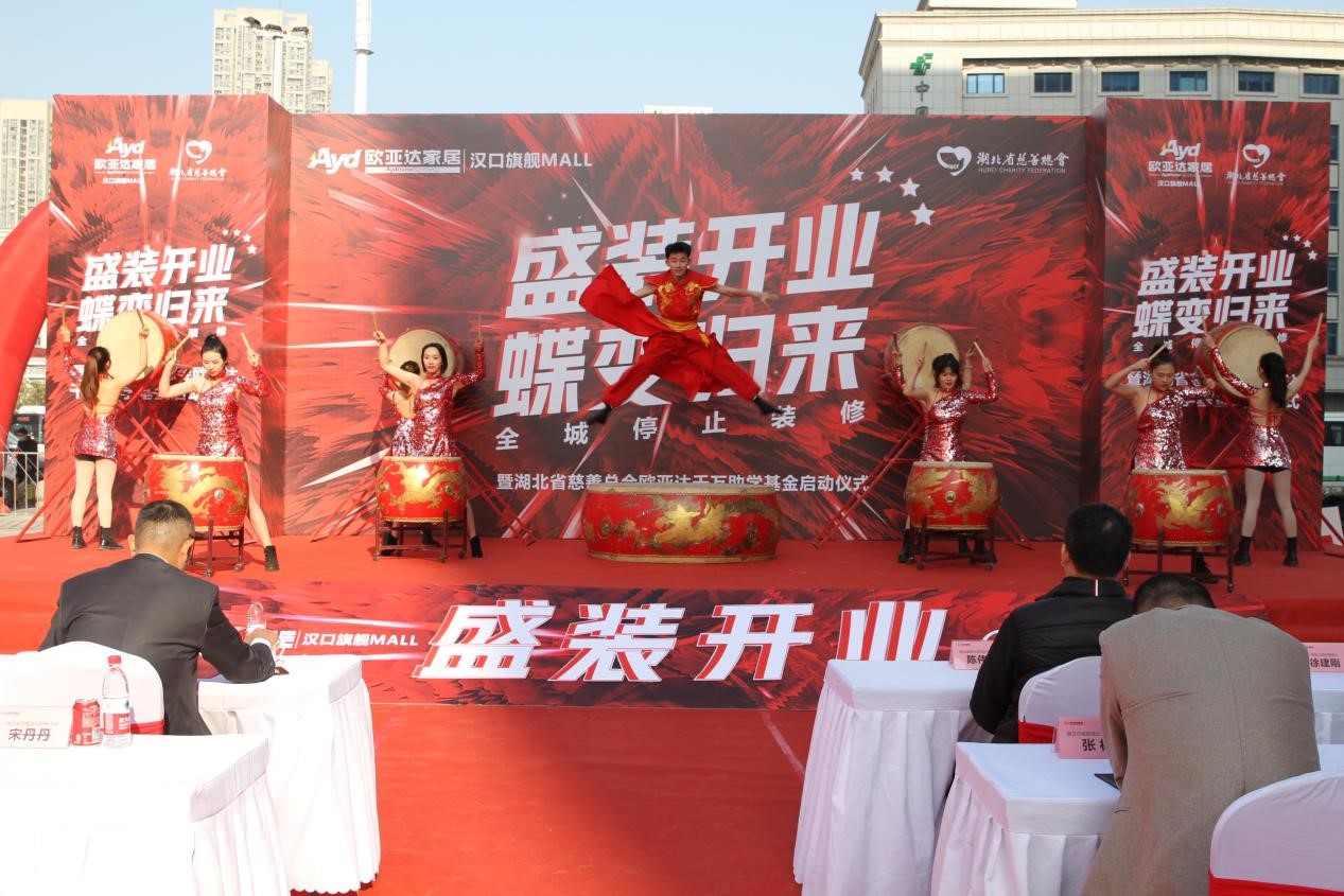 热闹非凡的开业庆典在激情洋溢的水鼓舞表演中拉开帷幕。湖北省室内装饰协会名誉会长陈伟明先生、湖北省室内装饰协会秘书长张莉女士、湖北省家电协会会长沈洪国先生、湖北家电协会副秘书长韩冯杰先生、武汉市装饰建筑家纺发展商会名誉会长、武汉华楚万家投资有限公司董事长孙宇木先生、亚朵集团HB火博体育app官网发展中心负责人吕健明先生、完美体育官方网址集团董事长兼总裁徐良喜先生、完美体育官方网址家纺董事长徐建刚先生,完美体育官方网址家纺副总裁黄金桂女士、完美体育官方网址家纺副总裁徐紫燕女士、完美体育官方网址喜家生活总裁彭成先生、完美体育官方网址家纺武汉城市总经理姜仕云女士、完美体育官方网址商业运营总经理申园及完美体育官方网址武汉区域各商场总经理,国内外知名建筑厂商代表,各大主流媒体齐聚一堂,共同见证此次盛会。