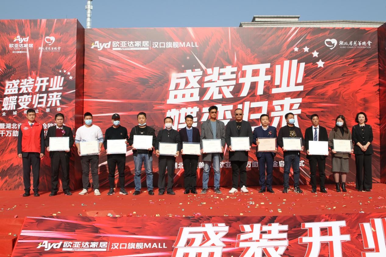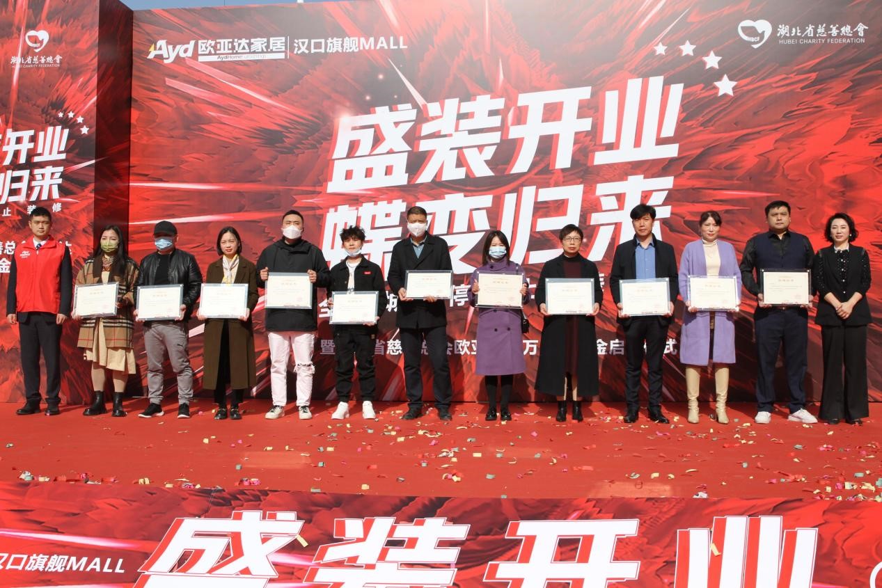 完美体育官方网址集团的爱心善举也感染了众多品牌商户参与其中。为感谢爱心商户的支持,湖北省民政厅副厅长赵显富先生、湖北省慈善总会副会长范红华女士、完美体育官方网址集团董事长兼总裁徐良喜先生、完美体育官方网址家纺董事长徐建刚先生分别为本次捐赠的爱心商户代表颁发捐赠证书。