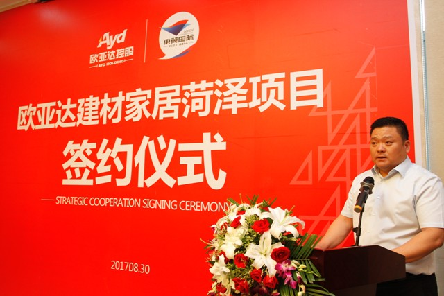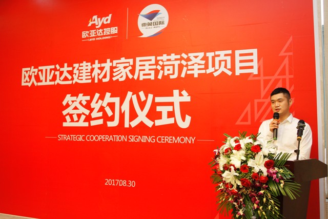菏泽市东翼置业有限公司董事长陈依东先生在接下来的致辞中表示,山东菏泽是中国牡丹之乡,城市基础建筑正处于快速发展阶段,未来十年内,菏泽市将爆发数千亿规模的家装需求,而东翼置业在此深耕十年,已铸造多座商居大盘,有着成功的操作经验,此次双方企业基于高度互信与战略发展的一致性,携手共进,两家集团企业的联袂,对企业快速发展将起到重要的推动作用,项目运营后,必将产生良好的经济、社会效益,必将实现双方企业的共赢。
